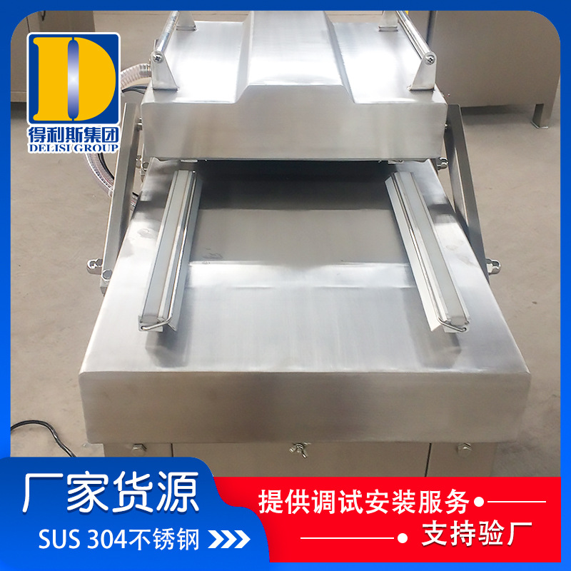 全不銹鋼SUS304材質(zhì)5mm真空室超厚鋼板,8mm真空室底板,不變形進(jìn)口PLC可編程邏輯控制器外置旋片式真空泵技術(shù),低噪音設(shè)計(jì)配置中德合資V100型真空泵。(抽氣速度100m3/小時)
